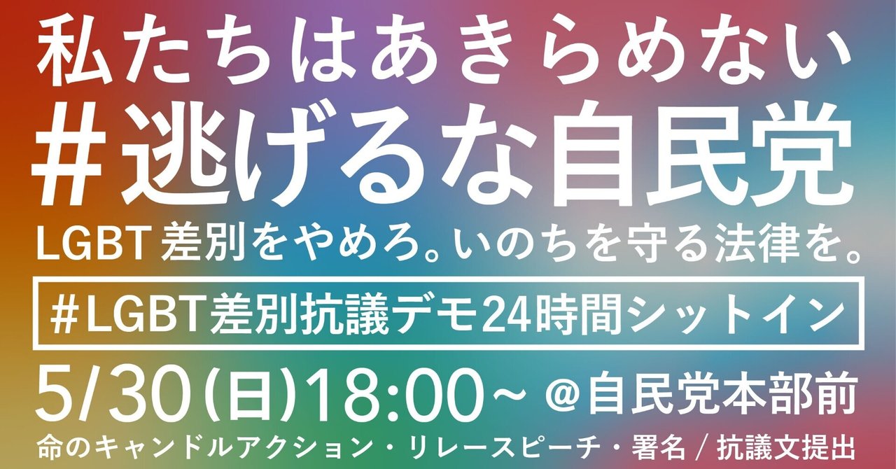 【緊急】 #逃げるな自民党 LGBT差別抗議デモ24時間シットイン|#LGBT差別抗議デモ24時間シットイン 5/30 18:00〜